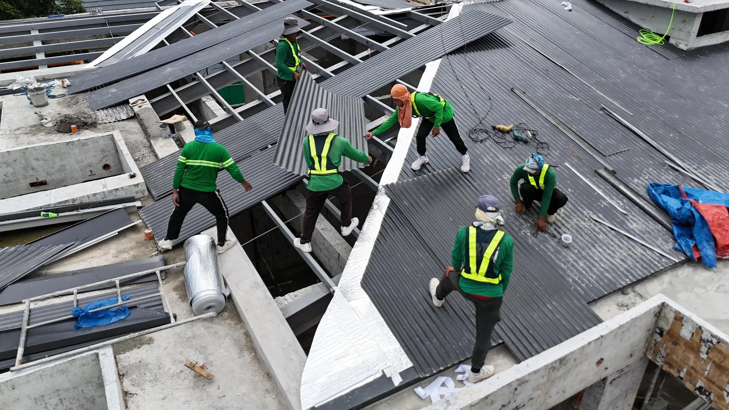 Supply and installation of corrugated metal sheets as the roof base, typically galvanized iron (GI) and often pre-painted or coated with Galfan for durability.